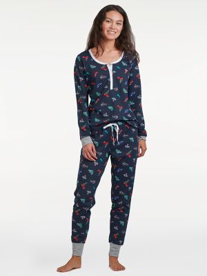 Tommy Hilfigers latest collection of womens nightwear and loungewear is where comfort meets style and premium luxury. Tommy Hilfiger Womens Thermal Pajamas wrp asinB00MHO6DS0 Henley features contrast colored cuffs stitching and embroideryBottom includes cuffed hem contrast stitching with corded drawstring tieComfortable and soft blend of cotton is great for sleepingItem is shipped with a Tommy Hifiger gift band perfect for holiday giftingTwo-piece printed pajama set featuring long-sleeve scoop. Tommy Hilfigers latest collection of womens nightwear and loungewear is where comfort meets style and premium luxury.