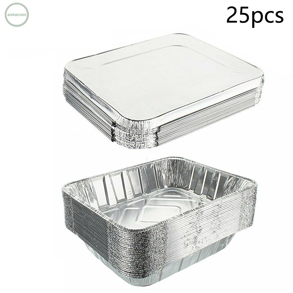 50pcs Reusable Bbq Aluminium Foil Box Dengan Sampul Mess Tin Kotak Makan Siang Grease Drip Panci Tray Outdoor Untuk Memasak Aliexpress