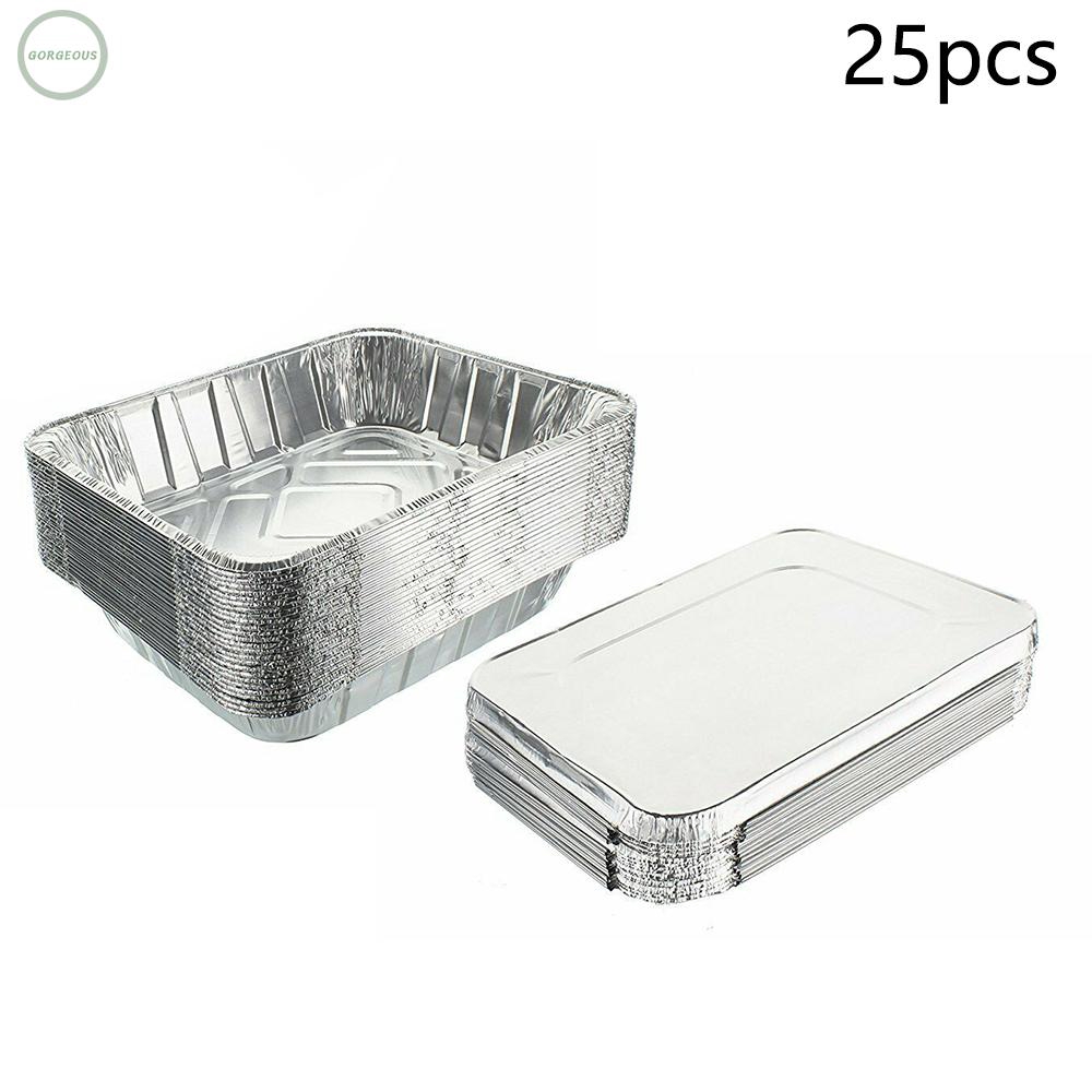 25pcs Wadah Makanan Model Sekali Pakai Bahan Aluminum Foil Dengan Tutupan Shopee Indonesia