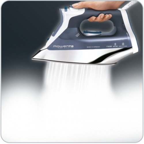 RowentaProduct Rowenta DW8061 Professional Steam Iron Stainless steel soleplate 1715 Watts Zen Blue. Loaded with features this iron has unique variable steam which adjusts the steam for different fabrics and thickness. The Pro Masters powerful shot of steam is pushed with high pressure into the fabrics for perfect penetration and creases out wrinkles perfectly even on thickest fabrics.