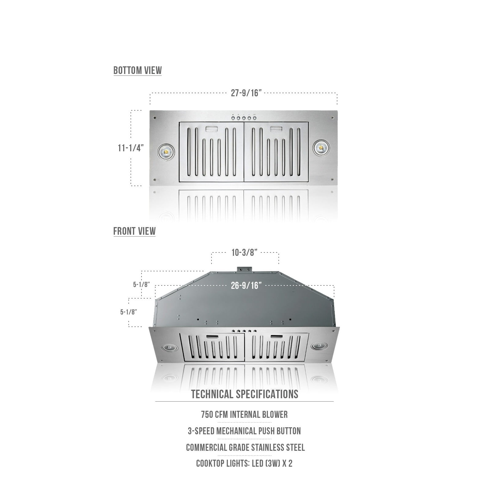 High performance with 750 CFM internal blower and operates very quietly. I put links to each KOBE INX2730SQB-700-2 Brillia 30-inch Built-in Insert Range Hood 3-Speed 550 CFM LED Lights Baffle Filters reviews at Amazon page in. This range hood is beautifully handcrafted with 20-gauge commercial grade stainless steel and will fit with custom cabinetry without the need for a liner.