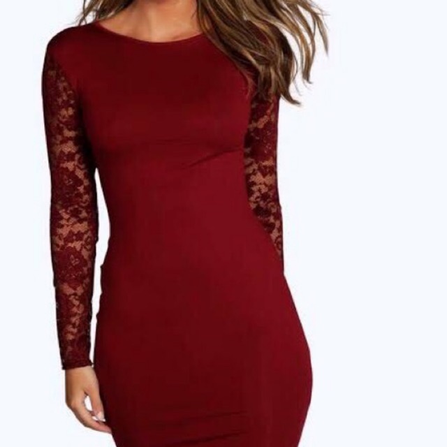 Forever 21 Red Wine Lace Long Sleeve Bodycon Dress Maroon Shopee Indonesia