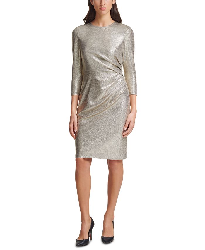 Vince Camuto Metallic Knit Side-Tuck Bodycon Dress.