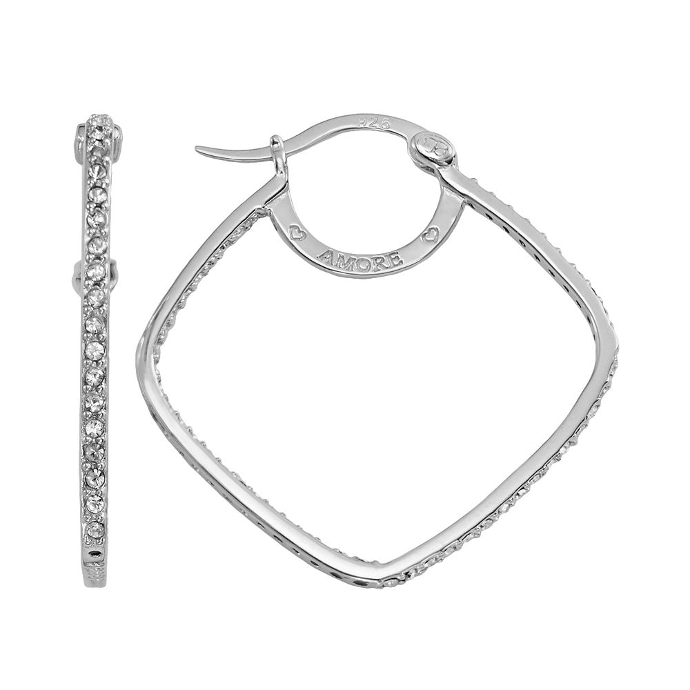 Amore By Simone I Smith Platinum Over Silver Crystal Square Inside Out Hoop Earrings
