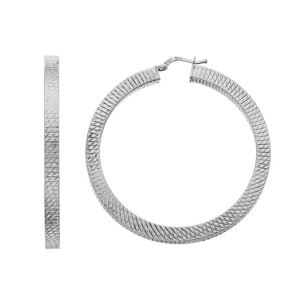 Amore By Simone I Smith Sterling Silver Textured Hoop Earrings