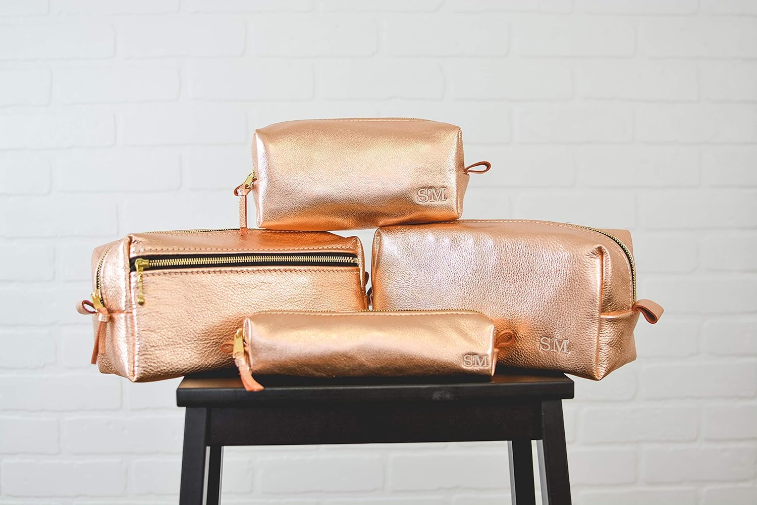 Amazon Com Personalized Rose Gold Leather Makeup Bag Cosmetic Case Monogram Makeup Bag Toothbrush Pouch Toiletry Bag Travel Bag Bridesmaid Gift For Her Wife Mom Girlfriend Custom Make Up Bag Bridesmaids Gifts