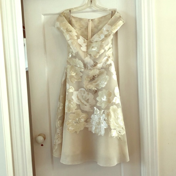 New Lela Rose Metallic Organza Floral Fil Coupe Dress Gold 4 Ebay