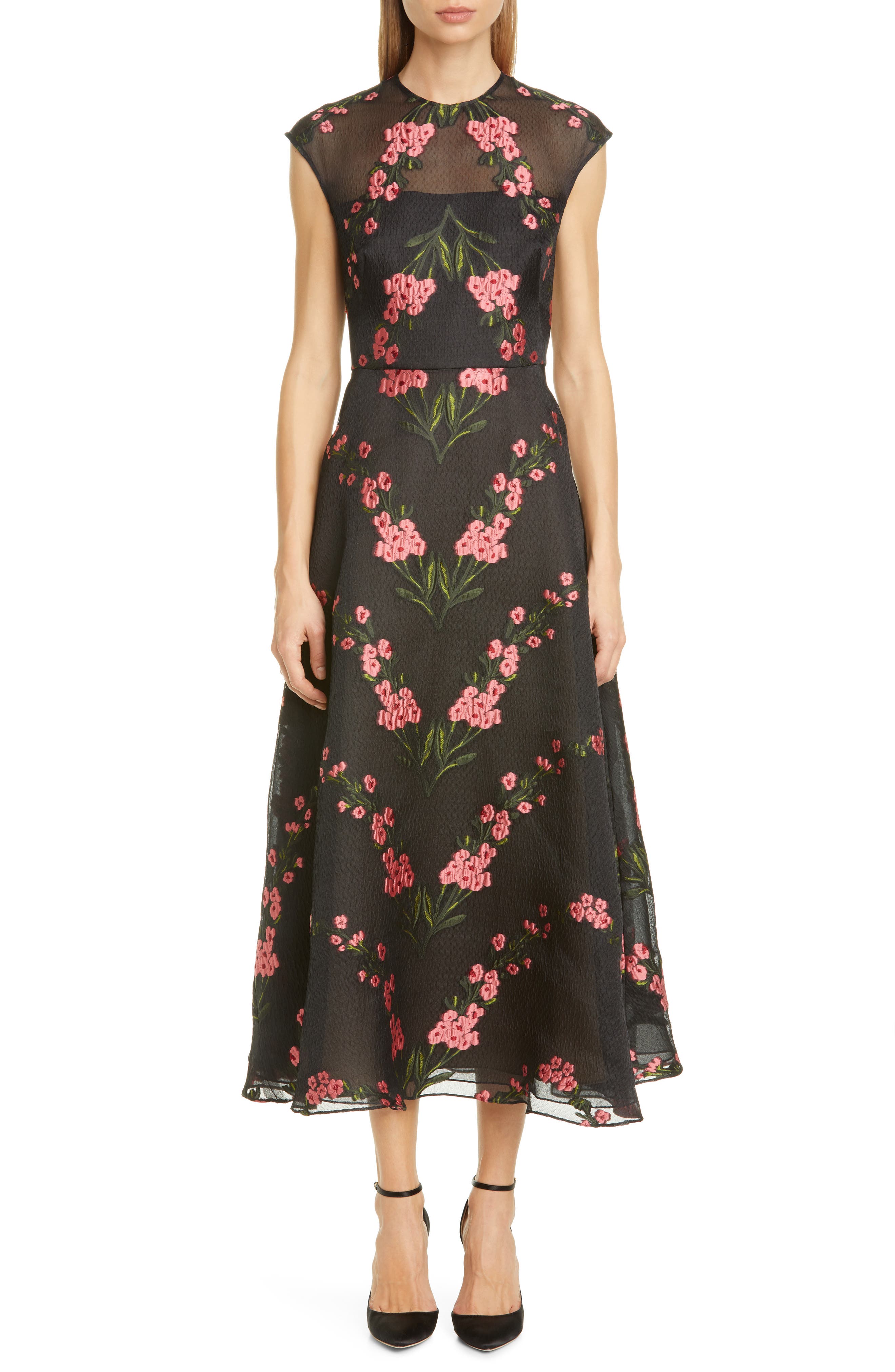 Black Wildflower Fil Coupe Silk Blend Organza Midi Dress Lela Rose Net A Porter