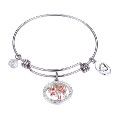 Footnotes Family Tree Clear Pure Silver Over Brass Stainless Steel Round Bangle Bracelet Color Silver Rose Gold Jcpenney