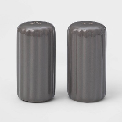 2pc Stoneware Ribbed Salt And Pepper Shaker Set Gray Threshold Target