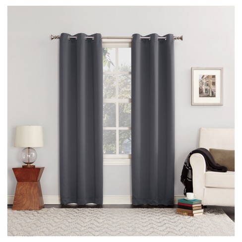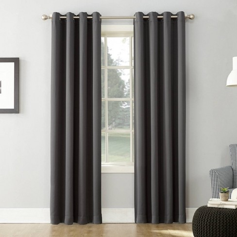 Sun Zero 95-in Charcoal Polyester Blackout Interlined Grommet Single Curtain Panel Item 2690761 Model 48701 Blackout technology blocks out most unwanted light while enhancing privacy Energy efficient design reduces energy lost through your windows by up to 25. Sun Zero Extreme Blackout technology is laboratory tested to block out 100 of light reduce outside noise by up to 35 and decrease energy lost through your windows by up to 50. Sun Zero Nolan Curtain Panel in charcoal is perfect for any room in your home.