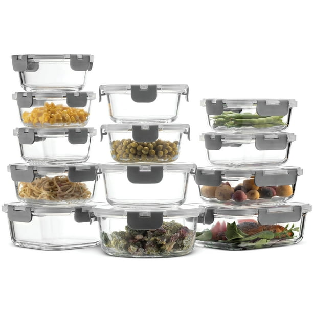 Razab 24 Piece Glass Food Storage Containers W Airtight Lids Microwave Oven Freezer Dishwasher Safe Steam Release Valve Bpa Pvc Free Small Large Reusable Round Square Rectangle Containers Walmart Com
