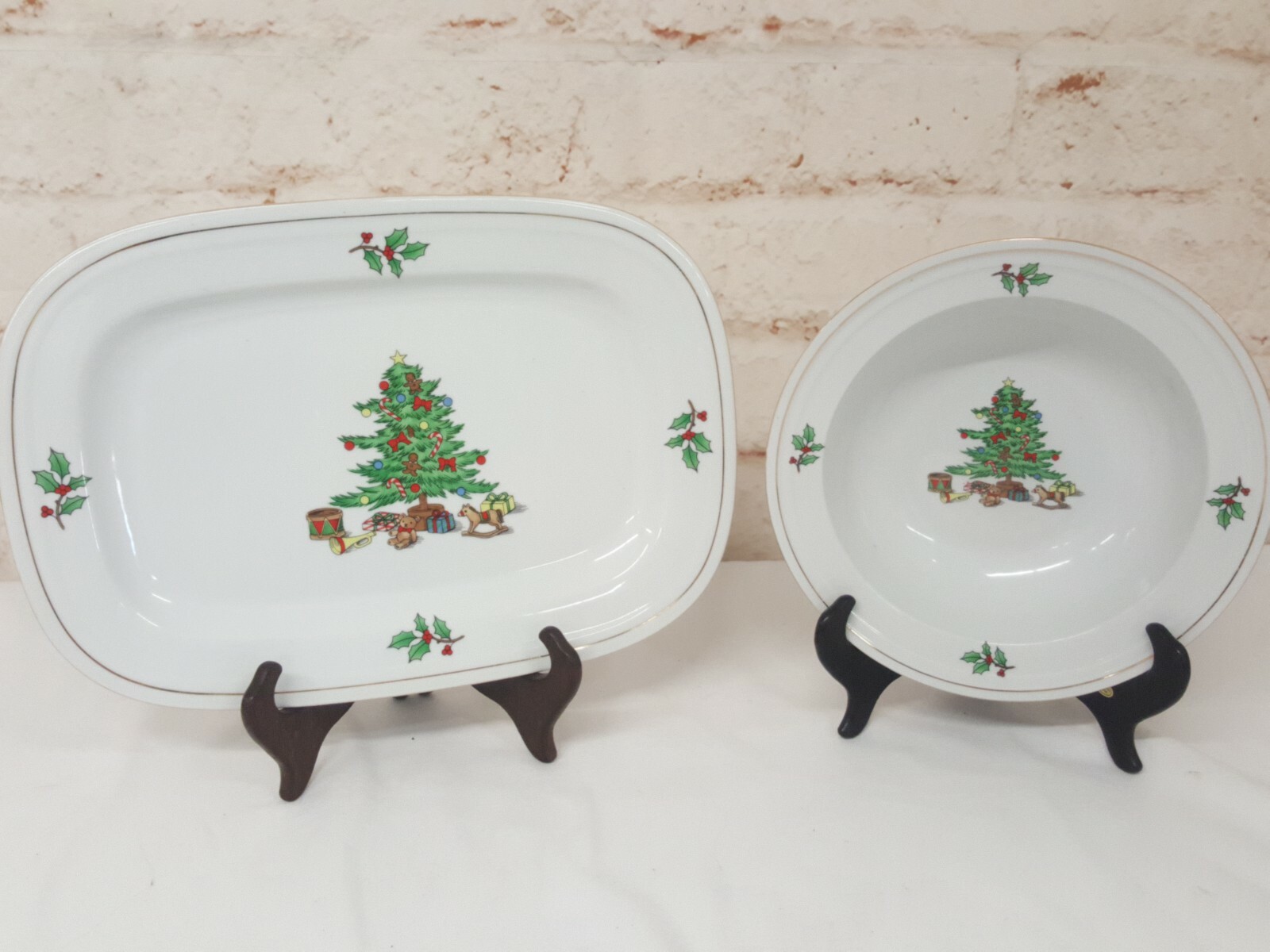 Holiday Hostess Christmas Tree Holly Dishes Tienshan China Set