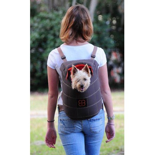Stylish checkered stitch finish Soft and durable nylon lining Can be carried on front or back. Celebrating 30 Years Of Exploring. Whether you wear it as a front-pack or a backpack in this carrier your dogs weight is centered on your body versus the carriers that hang on one shoulder or that you hold in one hand.