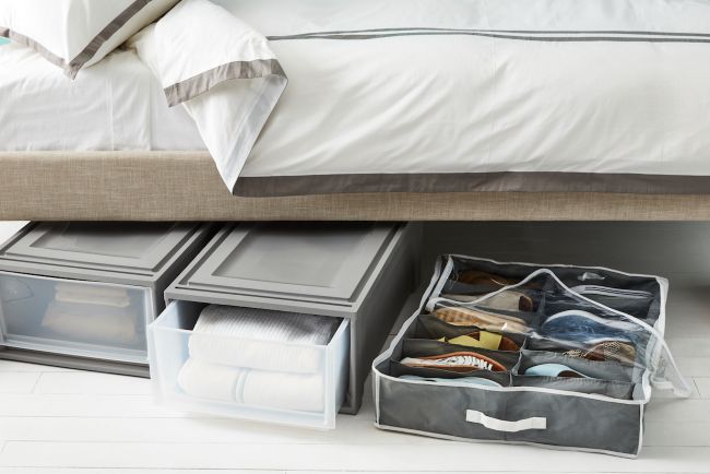 Instead opt for plastic boxes which keep the damp away and its also a good idea to line the bottom of the box with some old linens which can absorb any moisture that can build up as a result of. When you switch one seasons clothes and shoes for another try to keep this in mind. You may feel like your bedroom is the most logical place for clothing but it doesnt have to be the only place you store out-of-season clothes.